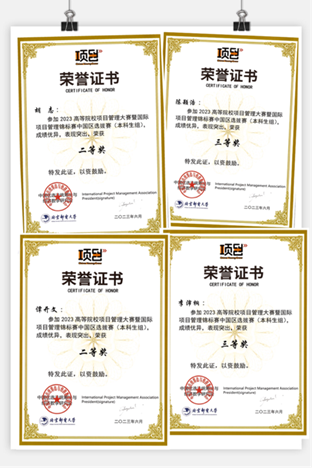 参加本次比赛的为能源与建筑工程学院工程管理及土木工程两个专业的学生,由谭开文、胡志、李沛桐、陈颖浩组成的项目管理团队中所有的小组成员均为第一次参加全国项目管理大赛。在比赛中,这些初次参赛的同学们不急不躁、稳中求进,遇到问题及时沟通,最终以优异的表现获得卓越项目团队二等奖。该项目管理团队小组组长谭开文同学毫不怯场,比赛开始后迅速调整状态,积极参与到比赛以及团队管理当中,并在个人知识理论竞赛环节大放异彩,最终使得团队获得二等奖荣誉。同时,他们也成功申请到IPMP-D级国际项目管理证书。此外,其他组员在比赛过程中的积极性和配合度也得到比赛组委员认可,最终,组员胡志荣获个人竞赛二等奖,组员李沛桐、陈颖浩荣获个人竞赛三等奖。