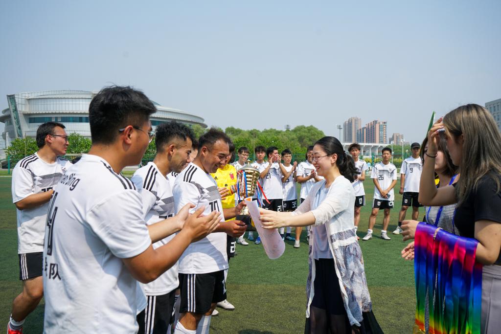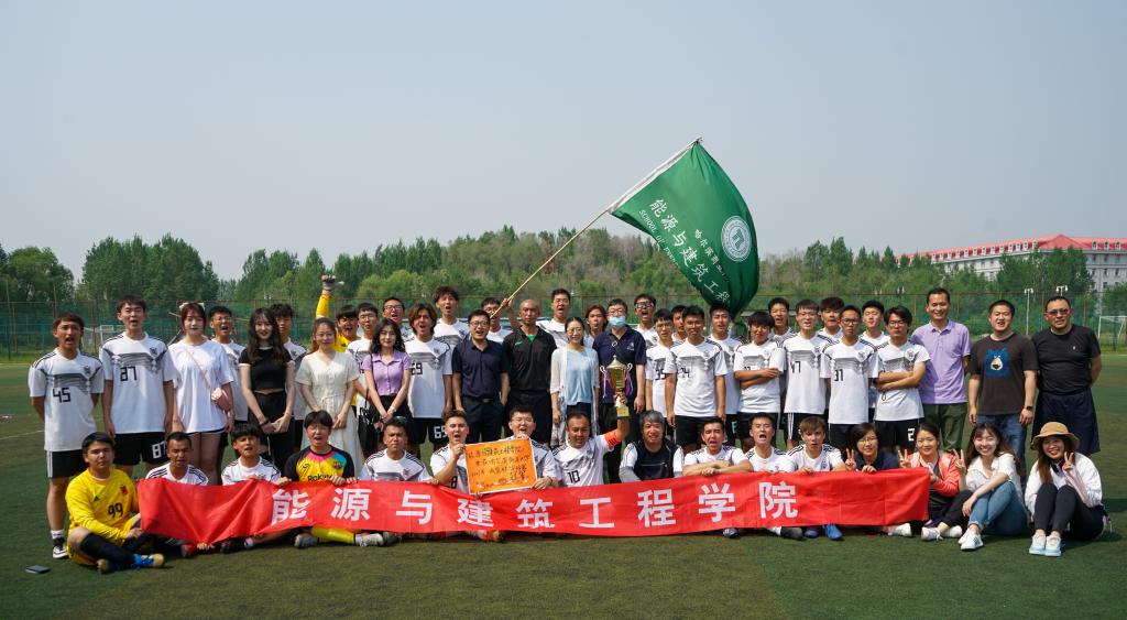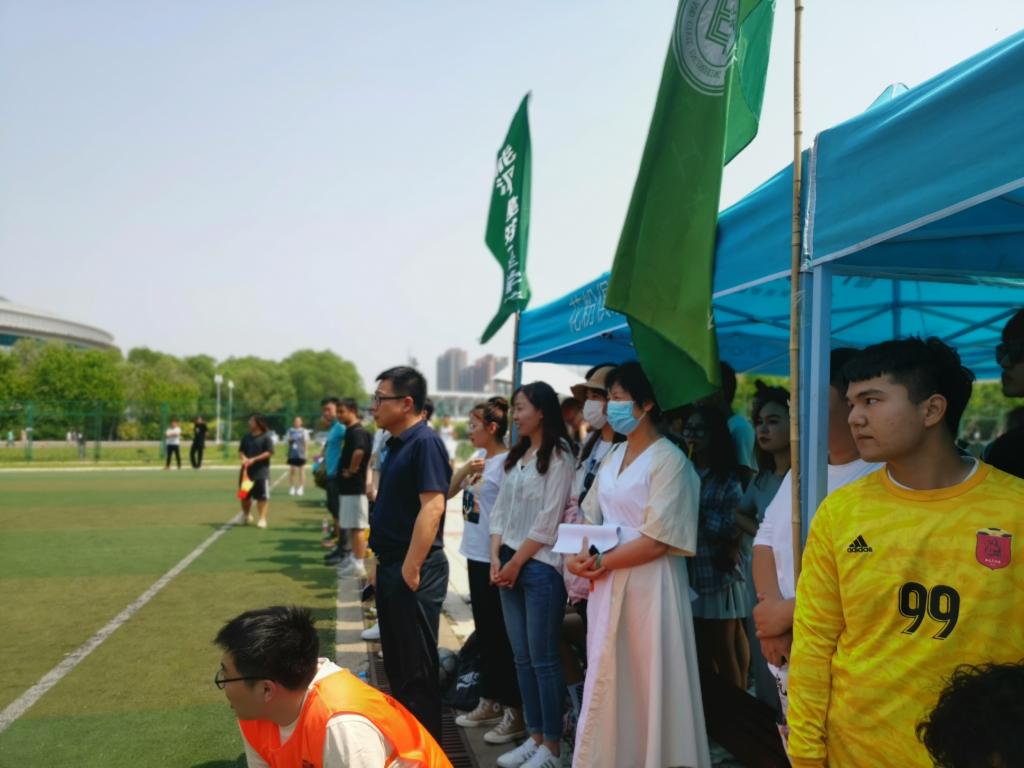 5月21日中午12时,能建学院足球队与法学院足球队在A区足球场展开最终对决。能建学院党委书记韩义军、院长李晓燕、院党委副书记金福吉、院团委书记王德娟,院团委副书记代文竹,18级辅导员刘逸、19级辅导员侯玮婷以及学院部分任课老师亲临现场,为我院球员助威加油。各年级同学们也自发来到球场观战呐喊,现场人声鼎沸,气氛热烈。