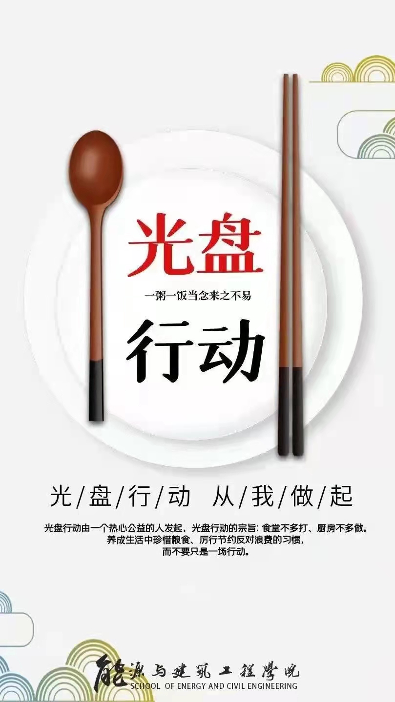 为倡导文明健康、绿色环保的生活方式,推进文明餐桌行动,培养学生勤俭节约、艰苦奋斗的精神,杜绝“舌尖上的浪费”,哈尔滨商业大学能源与建筑工程学院积极响应光盘号召,于3月20日-3月27日成功举办了以“光盘行动,你我同行”为主题的7天光盘行动打卡活动,引导师生们争做厉行节约的践行者、文明餐桌的维护者、美好生活的创造者。