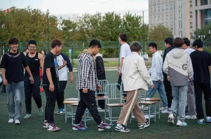 中秋之夜,月华如练,序幕一启,主持人以满腔热忱,点燃现场每一寸空气,氛围瞬间沸腾。开场是“两人三足”游戏,如同魔法般激活了每位参与者的热情,欢声笑语交织成最动听的序曲。紧接着,“抢椅子”大战轰轰烈烈上演,十二勇士围绕八椅展开激烈追逐,男生组三轮激战,直至三人一椅,紧张刺激;女生组亦不甘示弱,竞争同样白热化,场面既逗趣又温馨,为晚会添上浓墨重彩的一笔。文艺表演时段,22级学长曲睿与黄文博以歌传情,旋律悠扬,情深意长。大一新生亦不甘人后,纷纷登台,才艺横溢,光芒四射。正当众人沉醉于艺术海洋之时,孙老师与各专业同学们,共切中秋蛋糕,甜蜜共享,温情满溢,让这中秋之夜更加圆满。随后,甜蜜的糖果分发到同学们手中,于舌尖绽放,让这份幸福滋味在每个人心中缓缓流淌。晚会高潮迭起,孙老师与教官的合唱如同号角,引领同学们的情绪攀至顶峰,全员同唱,歌声响彻云霄,为这场盛宴画上了完美的句号。