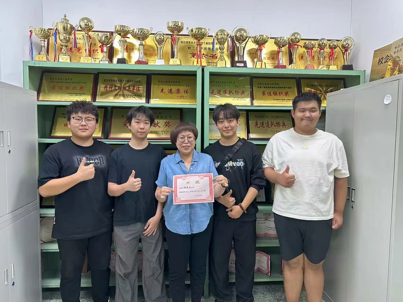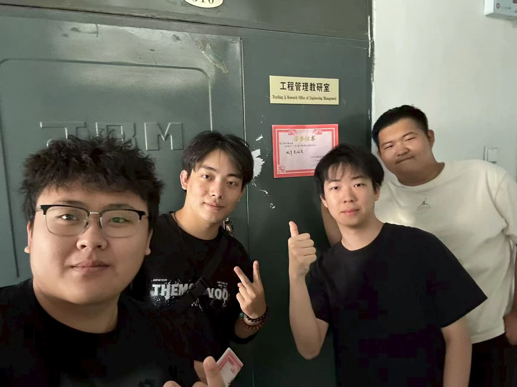9月10日清晨,学子们提前抵达学院。当教师陆续到岗时,大家上前颁奖并合影;对暂未到岗或教研室未开门的教师,同学们将奖状整齐贴在教研室门上,学院走廊瞬间成为充满温情的“感恩风景线”,教师们纷纷为这份惊喜与真诚动容。