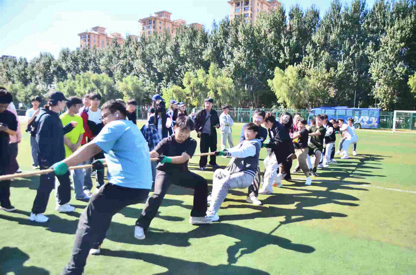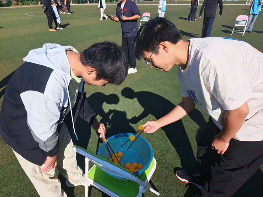 本次运动会设置了“板鞋竞速跑”“筷子夹球”“抱球跑接力”“齐心协力”“踢毽子”“踩气球”“拔河”“绑腿跑”八大趣味项目,兼具竞技性与互动性,既考验团队协作,又充满欢乐氛围。板鞋竞速跑中,五人同步喊着口号协同前进,默契配合攻克难关;筷子夹球项目里,同学们在“手忙脚乱”中比拼耐心与技巧,笑声不断;拔河赛场中,一根绳子凝聚起集体力量,震耳呐喊声彰显团结伟力;绑腿跑时,参赛队员脚步同频、心跳共振,用同步步伐诠释“同心同向”的真谛,各项目现场精彩纷呈,充分展现了民族体育的独特魅力。