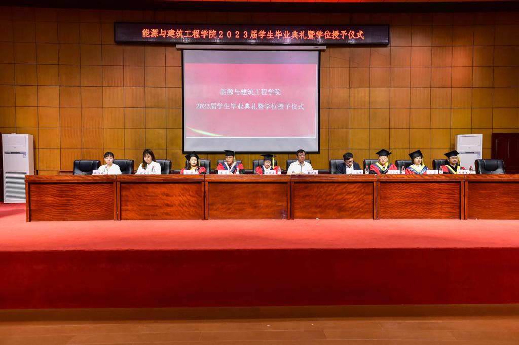 2023年6月18日上午9时,能源与建筑工程学院2023届学生毕业典礼暨学位授予仪式在专家公寓国际会议报告厅隆重举行。学院党委书记韩义军、院长杨晓庄、院党委副书记金福吉,专业教研室主任,各年级辅导员及教师代表们出席此次典礼。仪式由学院党委副书记金福吉主持。参加毕业典礼的有往届毕业生代表、2023届硕士毕业生、本科生。