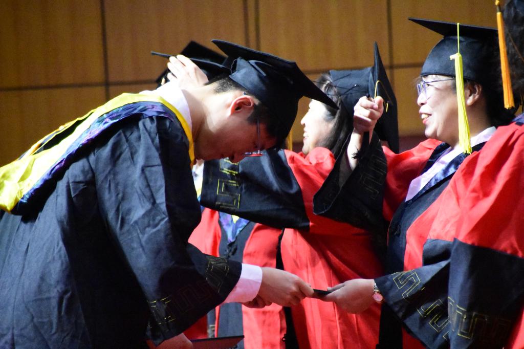 学位授予仪式环节由代文竹老师主持。代文竹老师、侯伟婷老师先后宣读了往届毕业生代表和2023届硕士毕业生、本科毕业生名单,院长杨晓庄、研究生导师和各专业教师分别为毕业生拨穗、发放学位证书并合影留念。本次毕业典礼特别邀请了因疫情未返校的往届毕业生代表参加,圆了一个完整的大学梦。