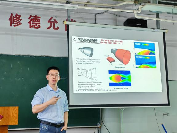 关奔教授的讲座题目为《火箭发动机先进喷管技术中的激波现象及其利用》,他通过一些生活中常见的现象入手,以通俗易懂的方式向同学们讲解了什么是激波,并对传统喷管技术和国内外火箭推进先进喷管技术进行了详细介绍。同时,关奔教授分享了其所在的重点实验室团队在先进推进技术、工程热物理、实验流体力学等领域取得的高水平科研成果,其技术攻关成果对我国相关领域的科技提升具有深远意义。