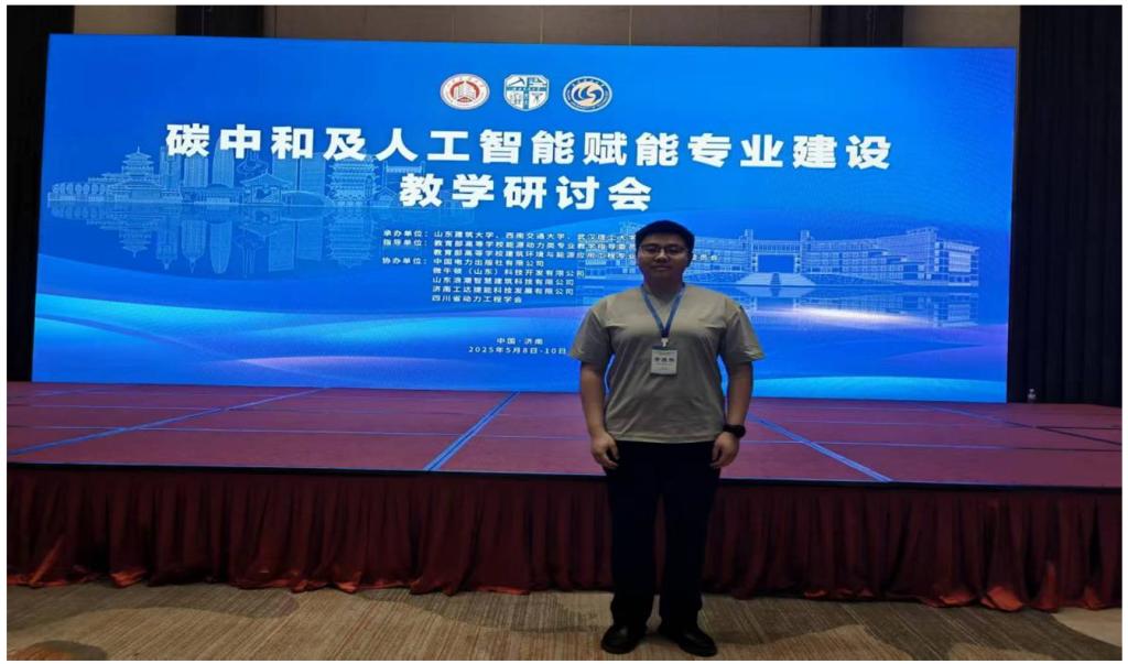 ⾸届碳中和及⼈⼯智能赋能专业建设教学研讨会于2025年5⽉8-10⽇在济 南融创国际会议中⼼成功举办。本次研讨会由教育部⾼等学校能源动⼒类专业教 学指导委员会指导,由⼭东建筑⼤学、⻄南交通⼤学、武汉理⼯⼤学联合承办, 中国电⼒出版社有限公司、微⽜顿(⼭东)科技开发有限公司、⼭东浪潮智慧建 筑科技有限公司、济南⼯达捷能科技发展有限公司、四川省动⼒⼯程学会协办。