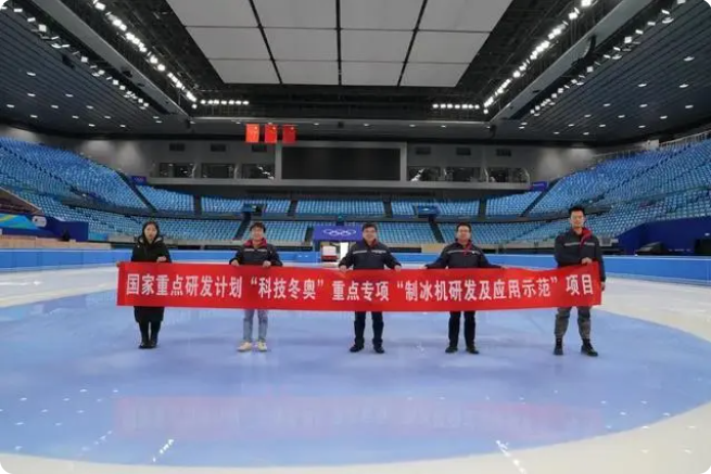 不同比赛项目,对冰场也有不同要求。以冰温来说,花样滑冰一般要求冰面温度-3.5度,这样冰面比较软,运动员在空中旋转三周或四周后,落冰的冲击力不至于太大。短道速滑一般要求冰面温度-6.7度到-7度,冰面相对硬一些。太软,不利于冰刀抓地;太硬,冰面又比较脆。整个制冰过程中,浇冰师在冰场发出各种指令,制冰系统则是幕后“神器”,负责满足种种严苛要求。“优质的冰面有助于运动员取得更好成绩,而获得优质冰面除了制冰师高超技艺外,制冰系统所决定的冰面温差均匀性和软硬度均匀性则是关键性基础。”科技冬奥专项“制冰机研发及应用示范”项目负责人、天津大学机械工程学院田华教授如此总结。可以说,制冰机是人工冰场建设的关键。冬奥史上“最环保”,系统综合节能超50%。本届冬奥会的制冰系统,被媒体称为冬奥史上“最环保”。“从历届冬奥会冰场制冰机来看,主要采用氟利昂等人工合成制冷剂技术或者氨制冷技术,前者存在严重的温室效应问题,后者又存在安全隐患。”田华说。以二氧化碳为制冷剂的“二氧化碳跨临界直冷制冰技术”,被认为是一种绿色低碳、高效节能的方案,但其技术一直掌握在欧美等国家企业手中。为助力绿色冬奥、科技冬奥,欧悦冰雪投资管理(北京)有限公司、天津大学等8家单位通过产学研协同攻关,联合研发、设计和建造了具有自主知识产权的二氧化碳跨临界直冷制冰机组,在首都体育馆冰场进行示范应用。