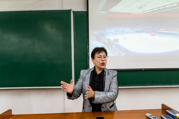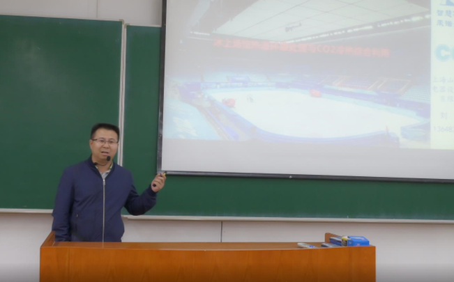 刘楷校友做主题为“冰上场馆热湿环境处理与CO₂冷热综合利用”讲座。讲座中详细分别介绍了CO₂跨临界制冷冰场的优势与特点,冰上场馆热湿环境处理的技术难点与方案,以及首都体育馆CO₂冷热综合利用的案例分析。刘楷是我院02届冷冻冷藏专业学生,现任上海山诺制冷电器设备工程有限公司副总经理。在2022年北京冬奥会与冬残奥会筹备期间,带领团队研发了二氧化碳跨临界直冷制冰系统,攻克了二氧化碳跨临界直冷制冰机组中国造技术。主持设计、施工和调试了首体场馆群4块二氧化碳跨临界直冷冰场,引领制冷领域低碳环保技术,以科技智慧助力冬奥。