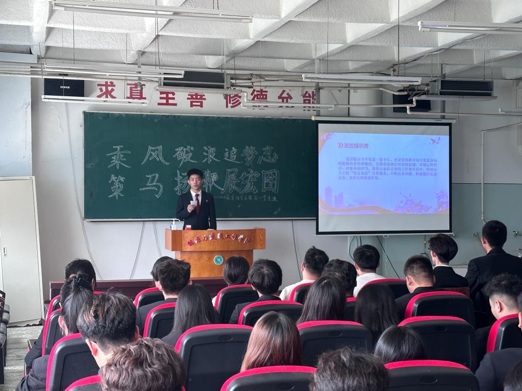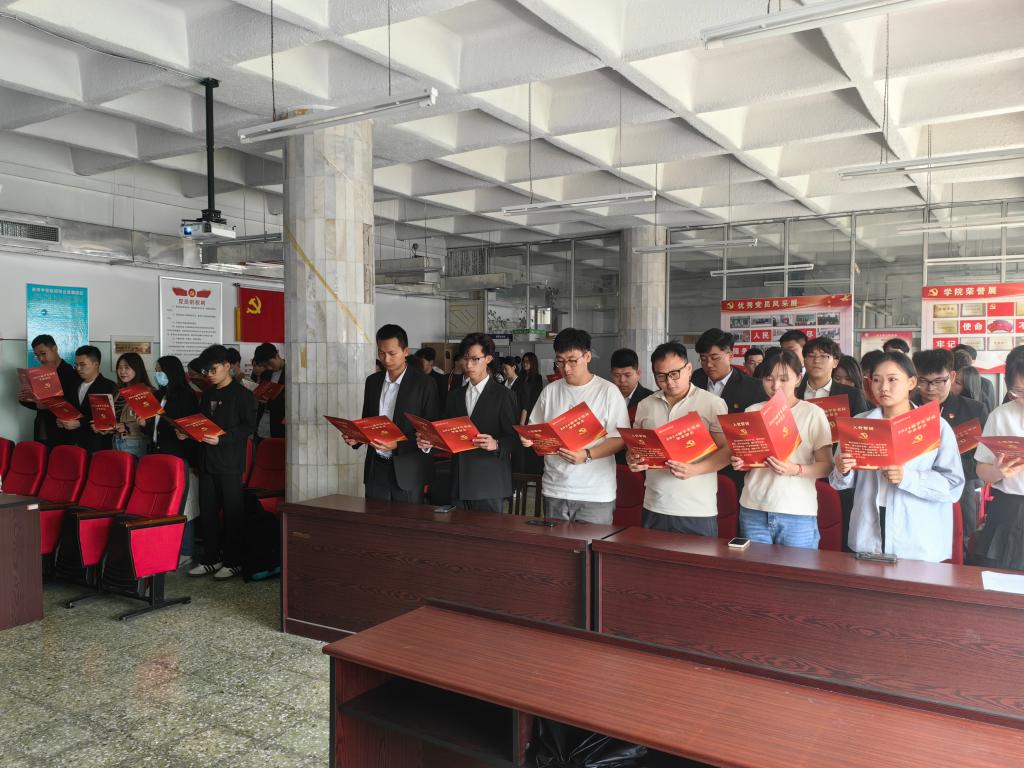 首先,主持人带领全体毕业生党员观看学习视频,再一次领悟党的章程精髓,更对党在不同历史阶段的使命以及党员的责任进一步的提高认识。毕业生党员当坚定理想信念,提高政治站位,强化责任担当,练就过硬本领,在新的岗位上发辉带头作用,勤于实践探索、勇于创新。接下来,发放了为毕业生党员量身定制的党员提示卡,提示卡承载了学院对毕业生的引导和关心,警示与期望。提醒毕业生走出校门仍牢记责任,提高素质,规范行为,做一名合格党员。随后,由分团委学生副书记倪小可带领重温入党誓词,全体毕业生党员面向党旗,初心向党,郑重承诺。最后,代文竹老师讲话,鼓励并给予毕业生建议,激励毕业生,在未来的职业生涯中,要始终以党的标准要求自己,确保思想上入党、行为上入党,并引导毕业生不忘初心,铭记使命。