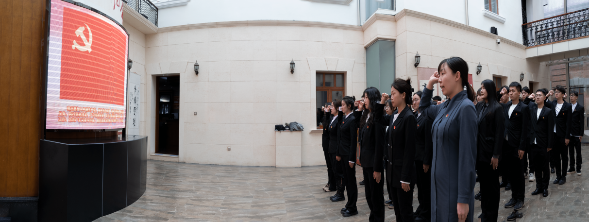 学生党员们耐心聆听讲解,观看影像资料,并在老师的带领下面对党旗庄严宣誓,作为国家新时代的建设者,更要坚定理想信念、增强历史自觉、弘扬优良传统、加强党性锤炼。